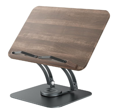 Tounee Book Stand for Reading, Adjustable Book Holder with 360° Swivel Base, Foldable Cookbook Stand Recipe Book Holder with Elastic Page Clips for Music Scores, Recipe, Tablet