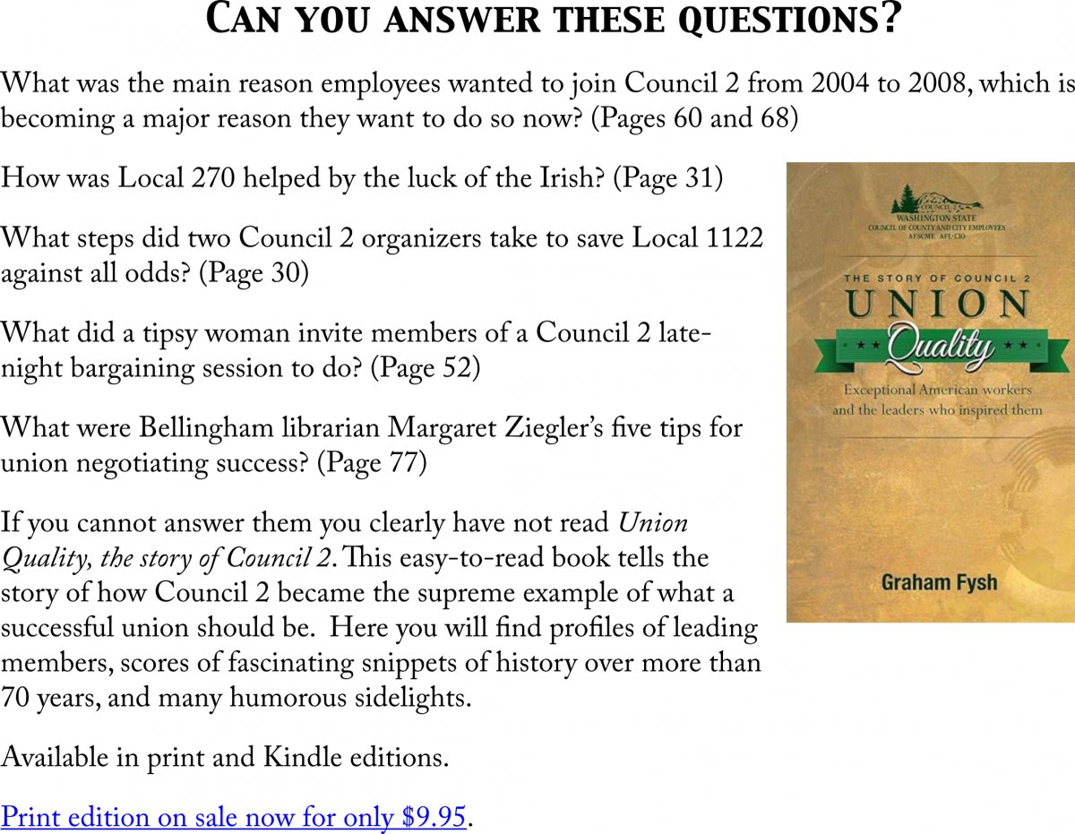 UNION QUALITY tells the story of a how Council 2 became a highly successful union representing council and city employees in Washington state